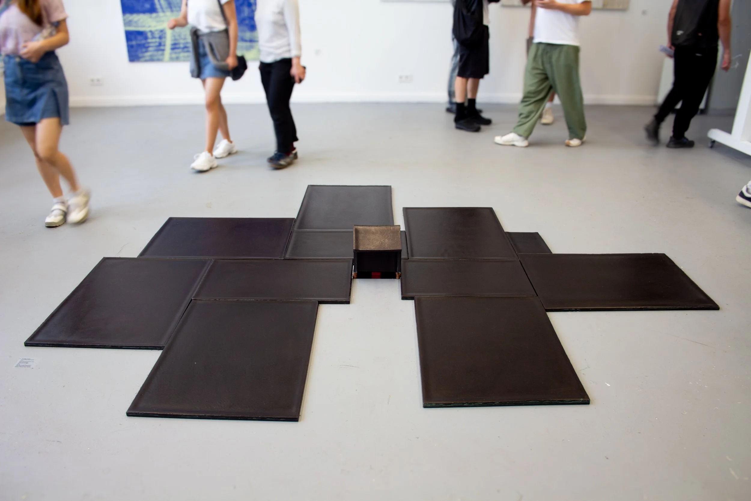 Wax, bitter chocolate (“gentleman’s chocolate”), food dye, moissanite, metal.